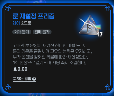 룬 각인 재설정 프리즘을 사용하여 룬에 각인된 부가 옵션들을 변경할 수 있습니다.