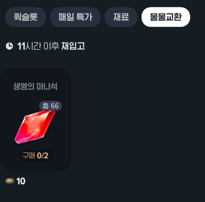 생명의 마나석은 하루 2개만 교환 가능한데요,