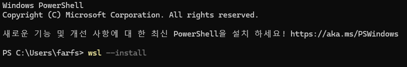 리부팅을 하고, 아래와 같이 터미널에서 "wsl --install" 명령어를 입력하여 wsl을 설치합니다.