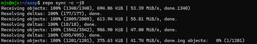repo sync -c -j8