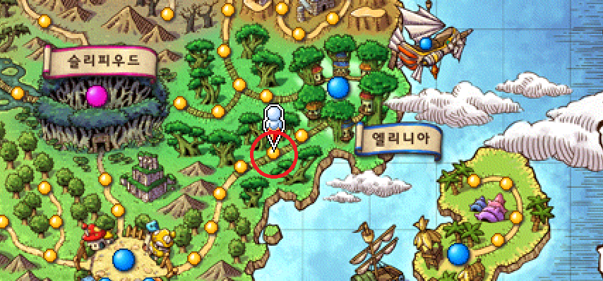 엘리니아의 왼쪽 맨 아래 포탈을 타고 지혜의 숲으로 갑니다.