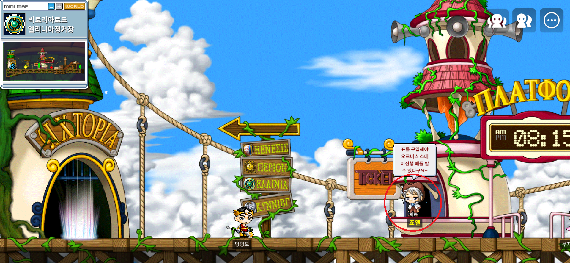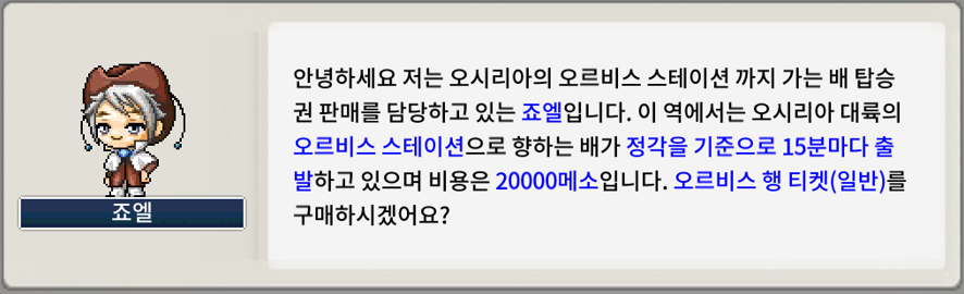 여기서 조엘을 클릭하여 오르비스행 티켓을 구입하셔야 합니다. (2만 메소)
